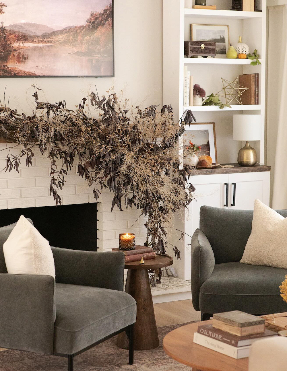 Dried leaves add a rustic, moody vibe, and we love that this natural decor is so low maintenance, especially when compared to traditional fall decorations like fresh flowers or pumpkins.