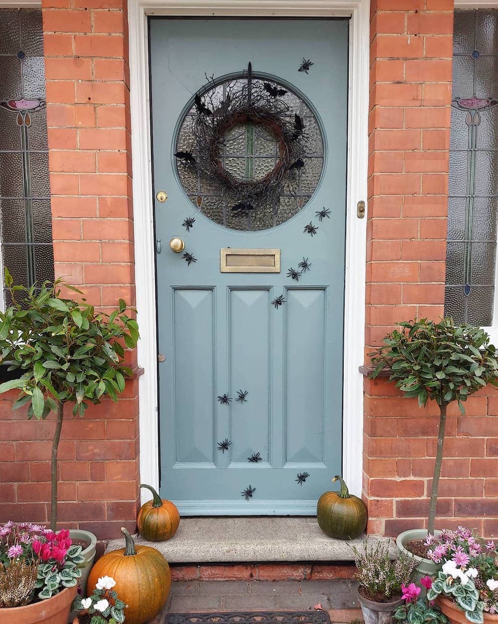 Bats and spiders never fail to bring a touch of spine-tingling fun to Halloween decor. Place plastic spiders and paper bats along your front door to create an eerie and classic holiday design.