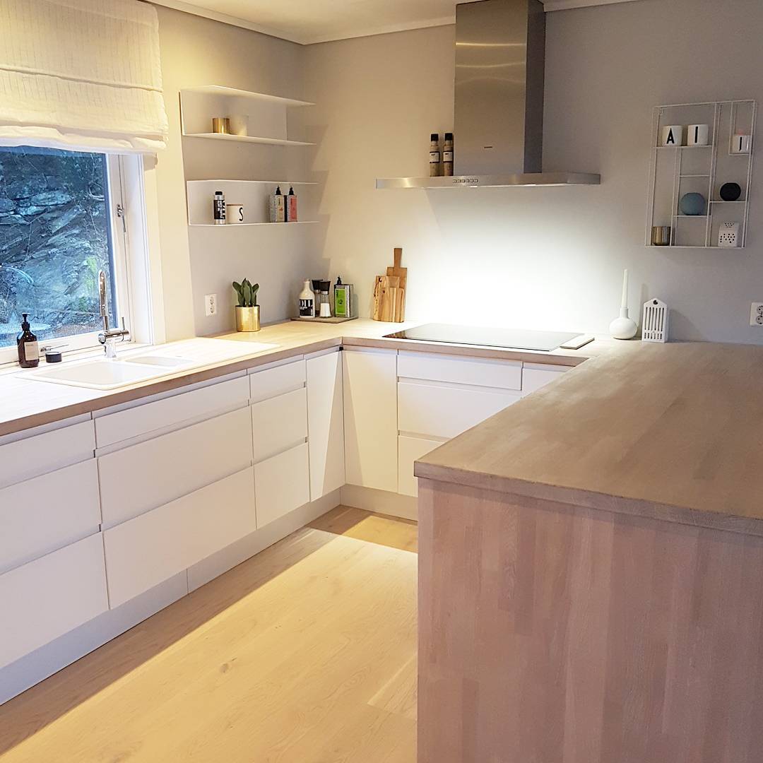 Here, ENKÖPING shaker-style fronts in white wood create a bright and inviting atmosphere, adding timeless elegance to the space. These doors also come in a rich walnut finish for those seeking a cozier feel.