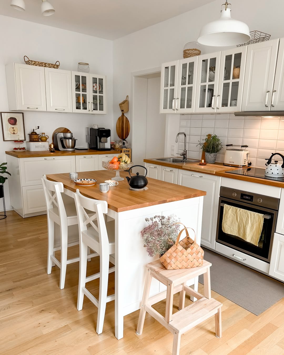 Combining crisp white and warm wood tones ensures a balanced aesthetic that feels functional and stylish.