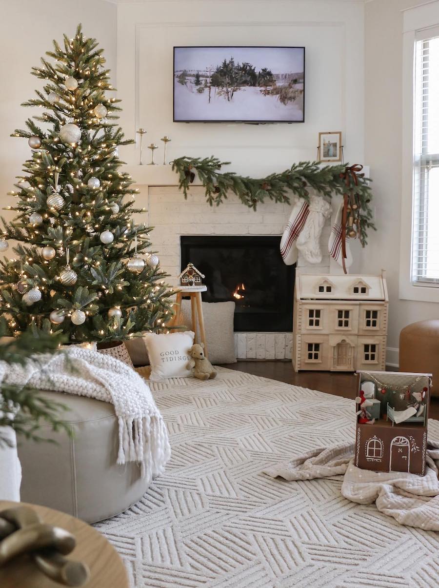 Minimalist Christmas decorations in neutral tones are so fitting for a contemporary space, in our opinion. We love the modern art prints mixed with simple wreaths and tree decor, adding an effortless but undeniable seasonal feel.