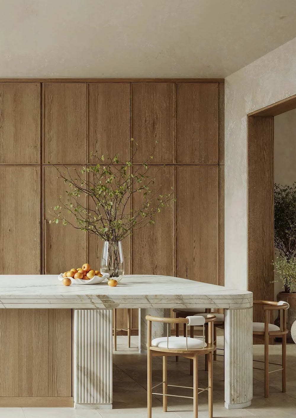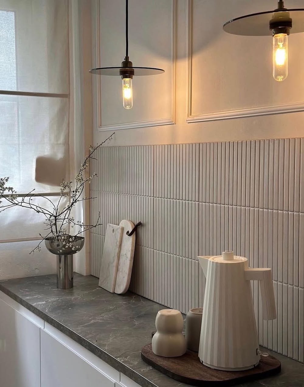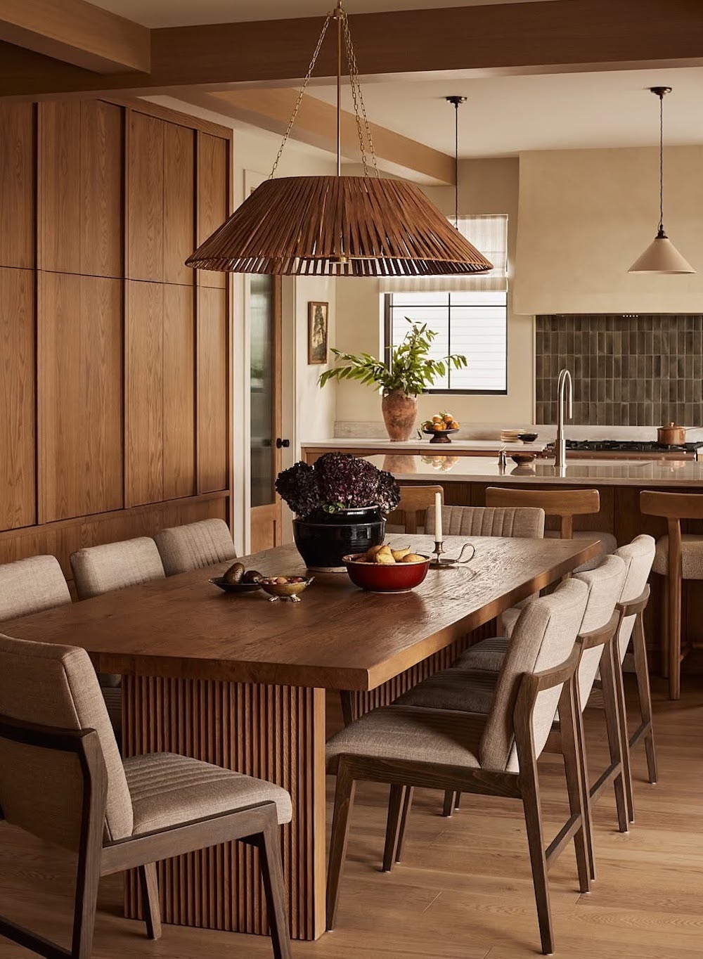 Accent walls, particularly reeded detailing, are popular in Japanese design and can add a gorgeous, organic texture to your Japandi kitchen. These accent walls can also serve as a focal point for the space, pulling one’s attention to the main workspace or a dining nook in the kitchen.