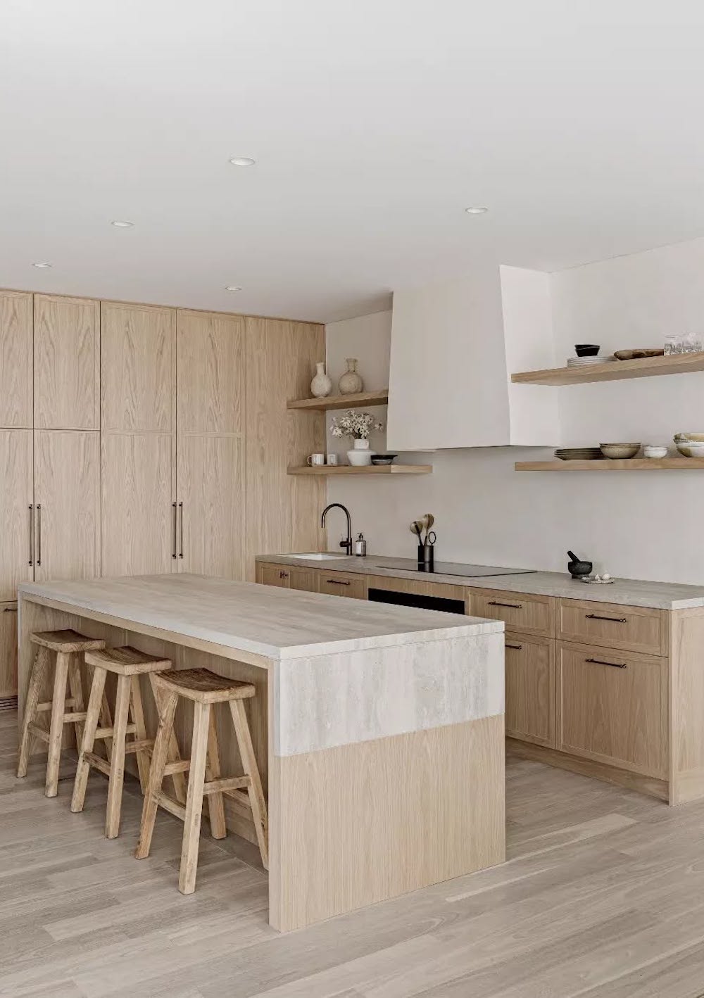 This Japandi design allows for an airy, effortless aesthetic. Plus, having fewer items to maintain and clean instantly makes your kitchen more peaceful while aligning with Japandi principles.