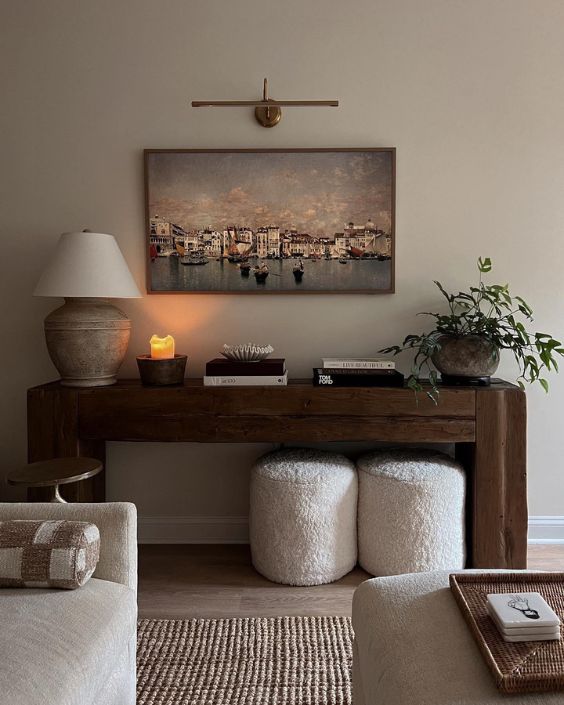 The key is scale—artwork that commands attention suggests both confidence and resources. A single statement piece often makes a stronger impact than multiple smaller items.