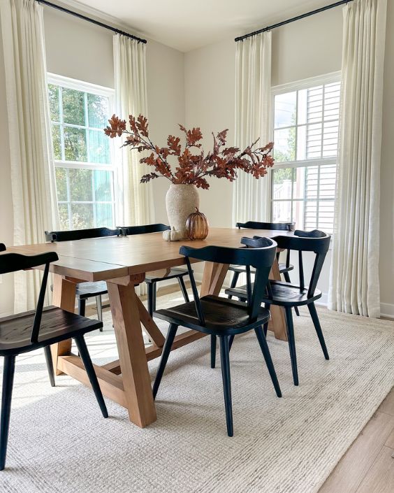 Dining room rugs must extend beyond the chair pullout radius. Properly sized rugs ground furniture arrangements and define zones in open-plan spaces, creating cohesive visual anchors.