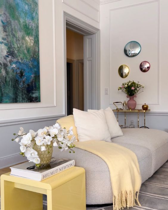 You don’t need to repaint a room to bring in spring color. A few well-chosen textiles or accessories in soft, nature-inspired tones do the job effectively.
